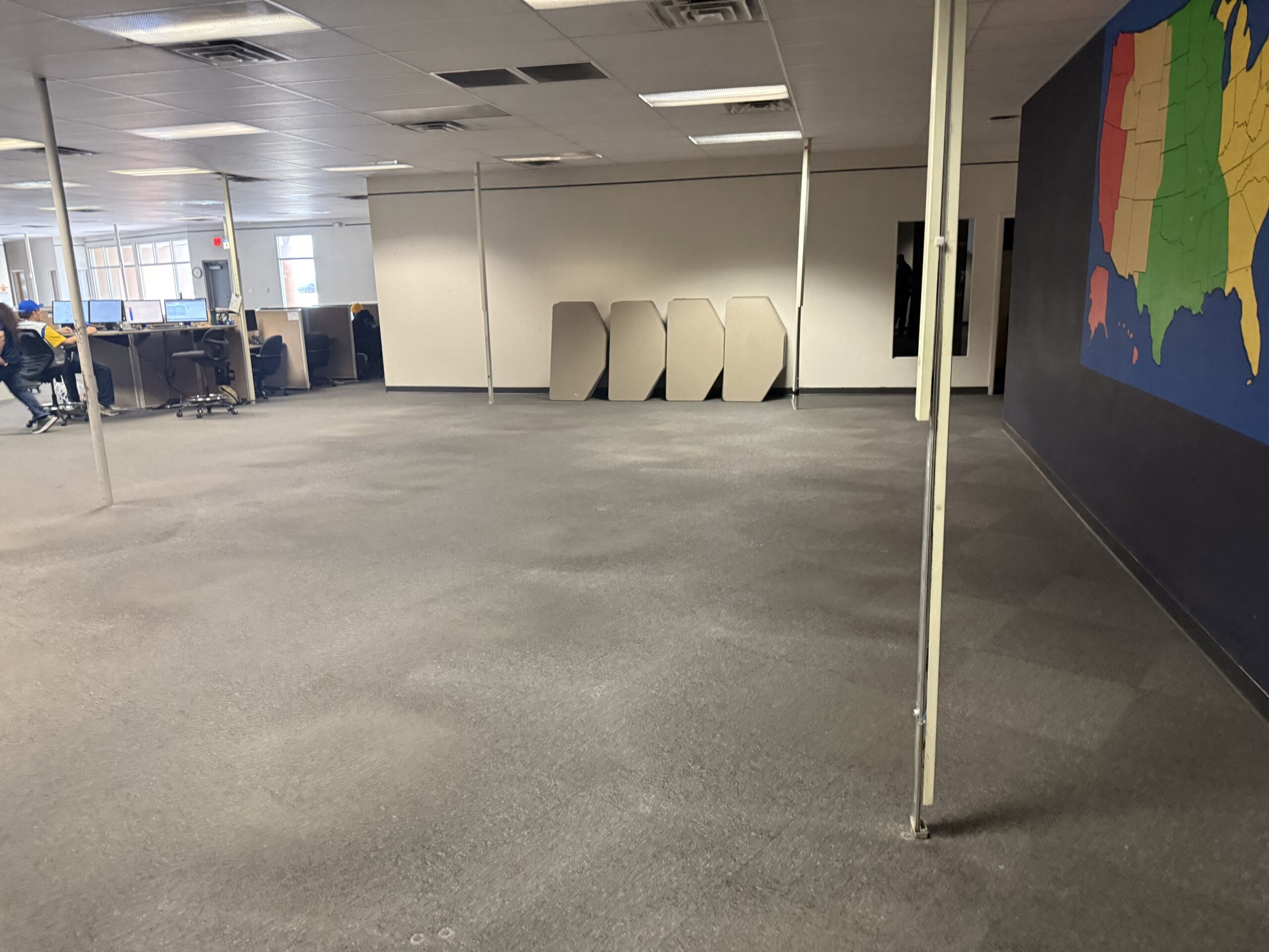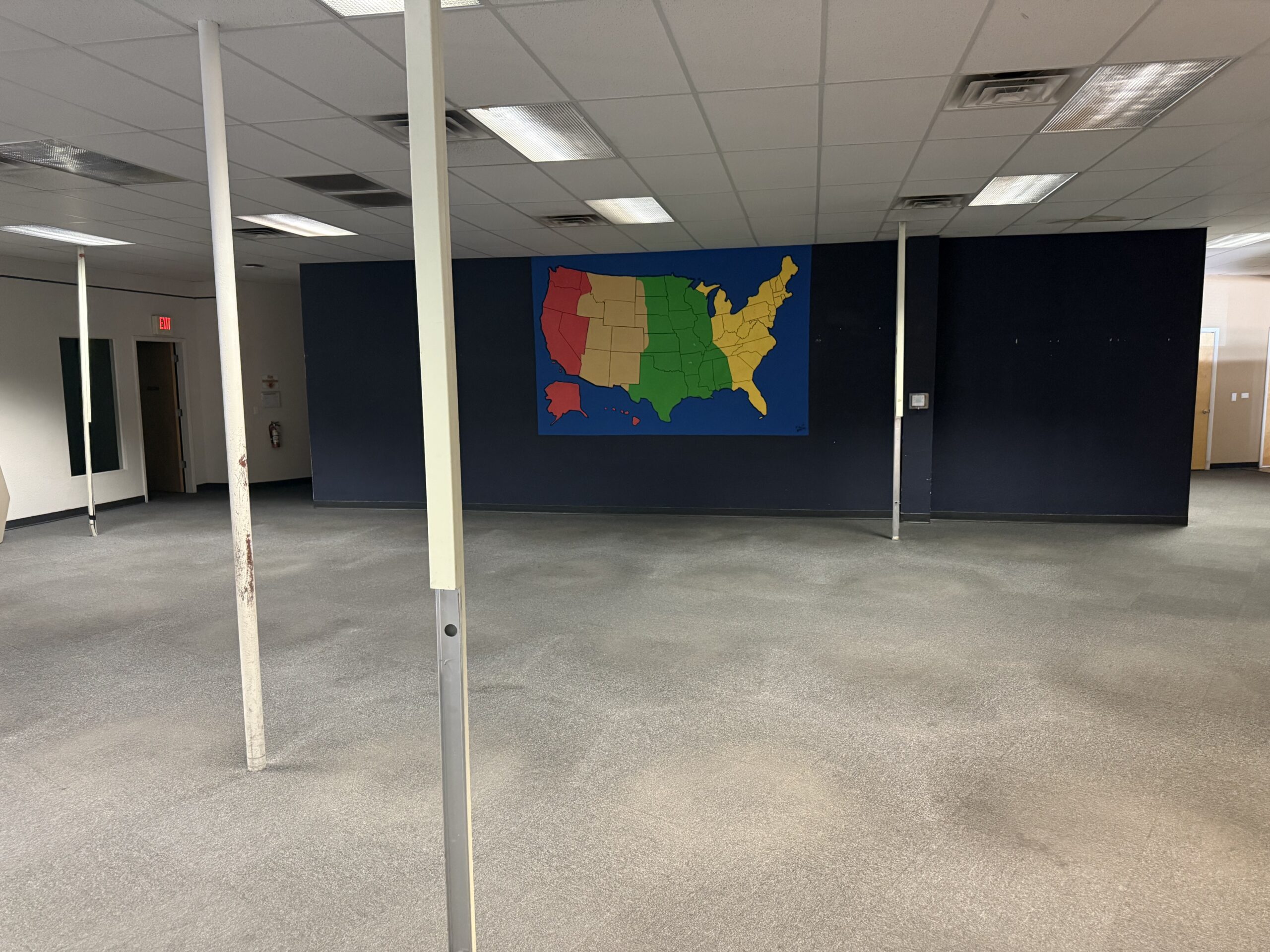 offices, or any business requiring a combination of private offices and collaborative workspace. The suite features a professional glass storefront entry, welcoming reception and lobby area, large open workroom suitable for cubicles or shared desks, six private offices, and a dedicated conference / training room. Additional amenities include a break room, server/IT room, multiple storage areas, and men’s and women’s restrooms.