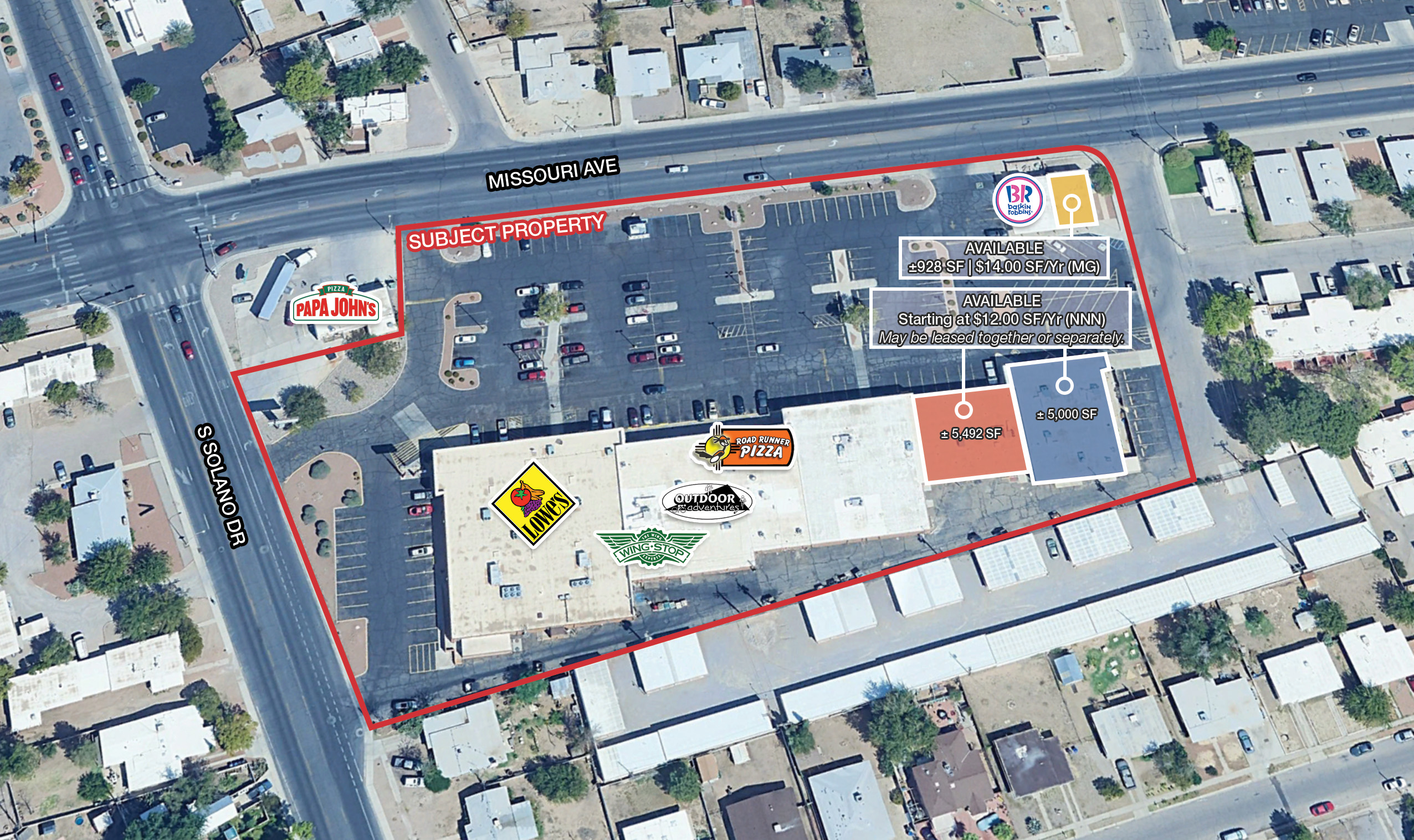 • Co-tenants include Wingstop, Roadrunner Pizza, Baskin Robbins, and Outdoor Adventure